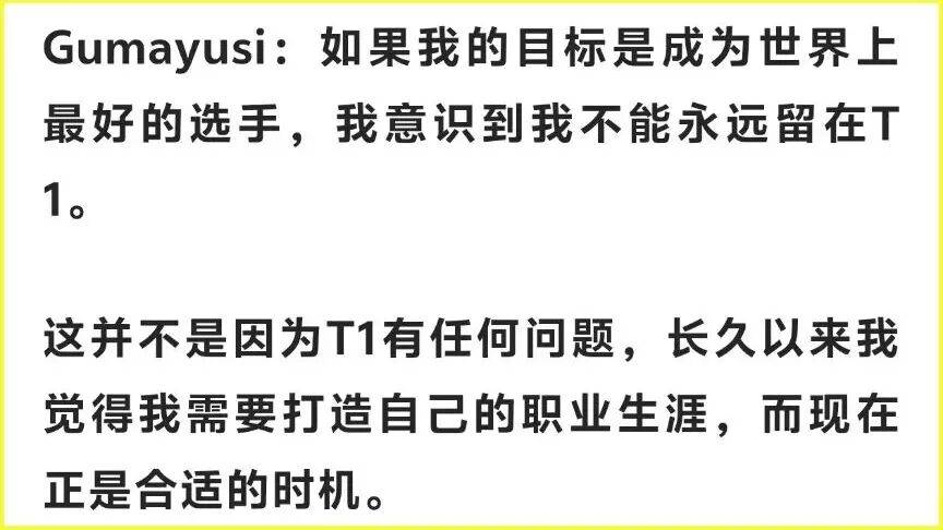 赛场之外,选手的转会故事同样引发热议。HLE 在 K 杯不敌 T1 之后,队内 ADC 选手 Peyz 凭借亮眼发挥收获了大量观众的认可,而与之形成对比的是,刚从 T1 离队的 “小吕布” Gumayusi 近期则遭到了不少质疑声。近日小吕布在接受采访时,首次正面回应了转会期离队的决定。他表示,自己的目标是成为世界赛上最顶尖的选手,而想要实现这个目标,就不能永远留在 T1—— 这并非 T1 存在任何问题,而是他需要一个全新的环境,去打造属于自己的职业生涯,现在正是最合适的时机。